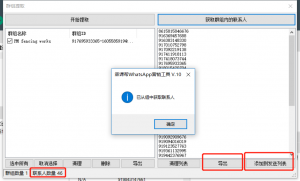 将已有群组勾上,点击获取群内联系人。窗口左下角将会显示联系人数量。