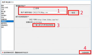 - 选中“启用”,账户(邮件地址)会面会自动填写注册邮箱(如果注册邮箱不正确可以进行修改)。